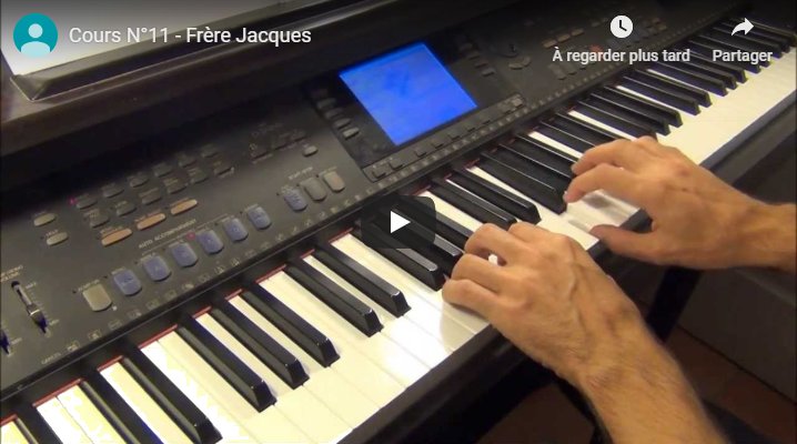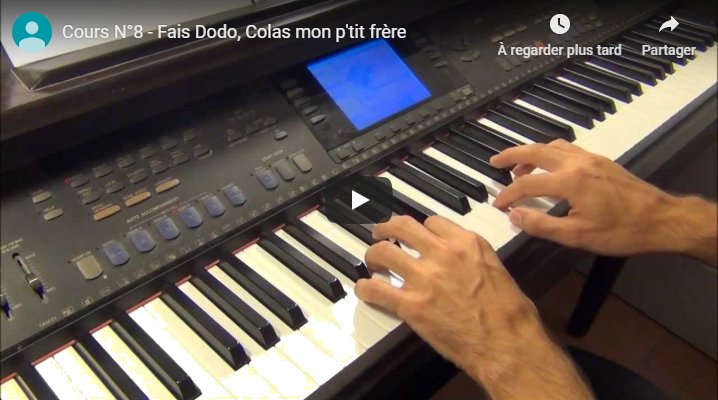 L'ensemble des vidéos de ces cours de piano de première année, hébergées sur Youtube. Ces vidéos ne forment pas un cours à elles-seules ; elles sont inséparables de la leçon.